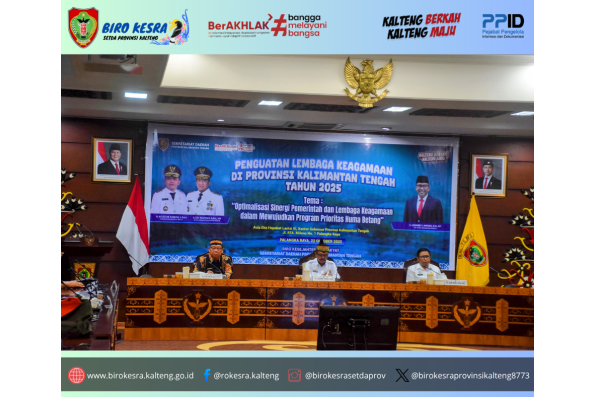 Palangka Raya – Pemerintah Provinsi Kalimantan Tengah melalui Biro Kesejahteraan Rakyat Setda Provinsi Kalimantan Tengah menyelenggarakan Kegiatan Sosialisasi Penguatan Lembaga Keagamaan di Provinsi Kalimantan Tengah Tahun 2025, dengan mengusung tema “Optimalisasi Sinergi Pemerintah dan Lembaga Keagamaan dalam Mewujudkan Program Prioritas Huma Betang.”