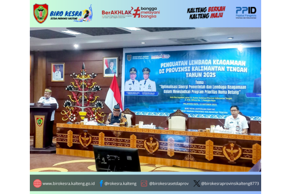 Kegiatan ini berlangsung di Aula Eka Hapakat Lt. III, Kantor Gubernur Provinsi Kalimantan Tengah, dan dihadiri oleh para pimpinan lembaga keagamaan, tokoh masyarakat, serta perwakilan perangkat daerah terkait. Rabu (22/10/2025)