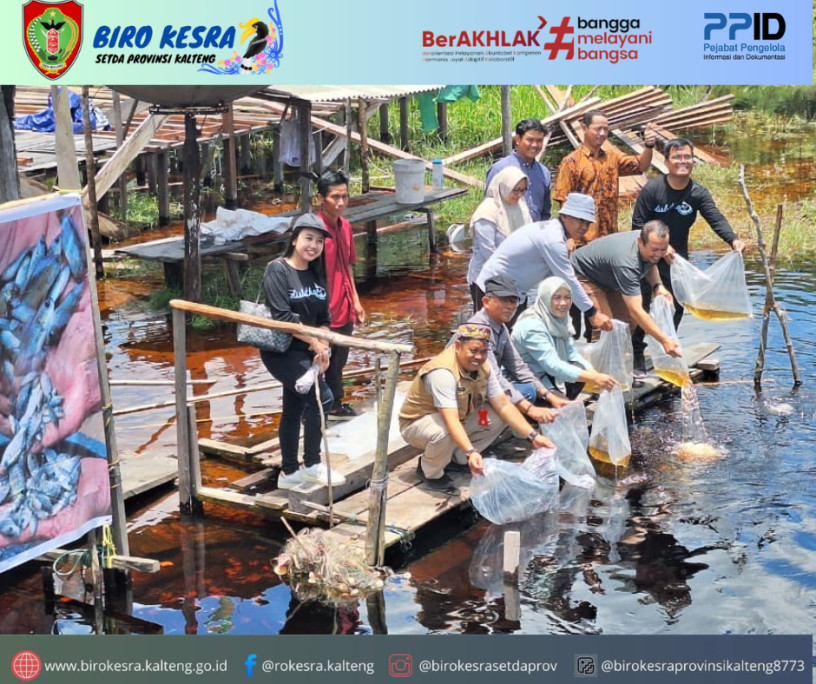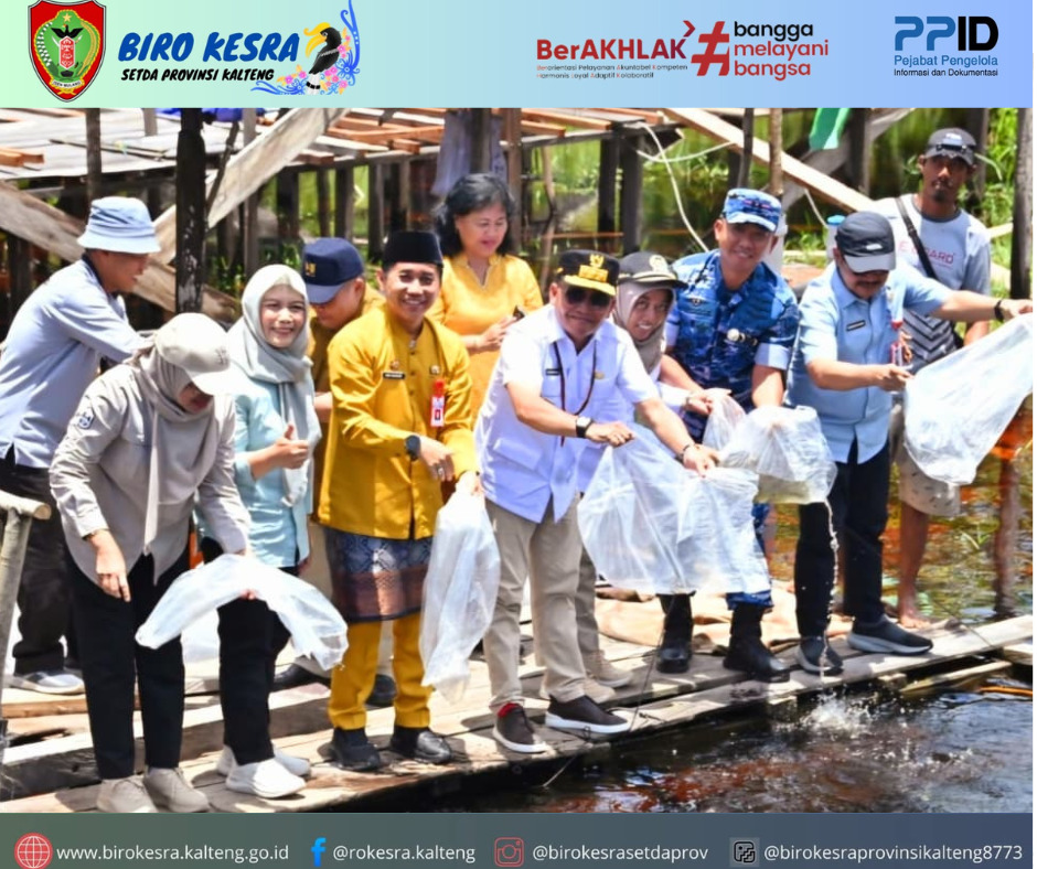 Plt. Kepala Biro Kesra Dampingi Gubernur Kalteng Pada Kegiatan Restocking Benih Ikan Di Sungai Kapitan.